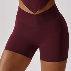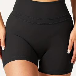 Solid Color Hip Lifting Yoga Shorts, Sports Running Fitness Shorts, Women’s Activewear