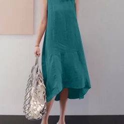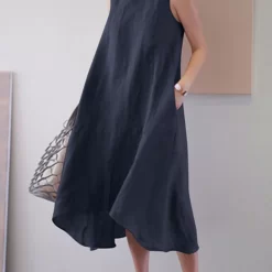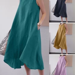 Macymars™ Round Neck Sleeveless Cotton And Linen Vest Dress